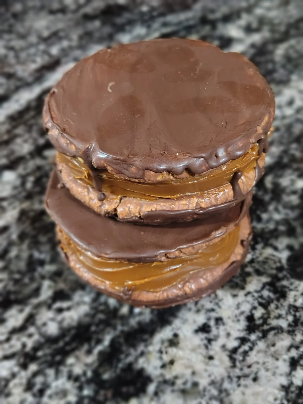 Ingredientes: Harina integral, miel, dulce de leche, baño de chocolate semi amargo, chips de chocolate semi amargo, huevo, esencia de vainilla, azúcar, polvo de hornear, aceite vegetal.