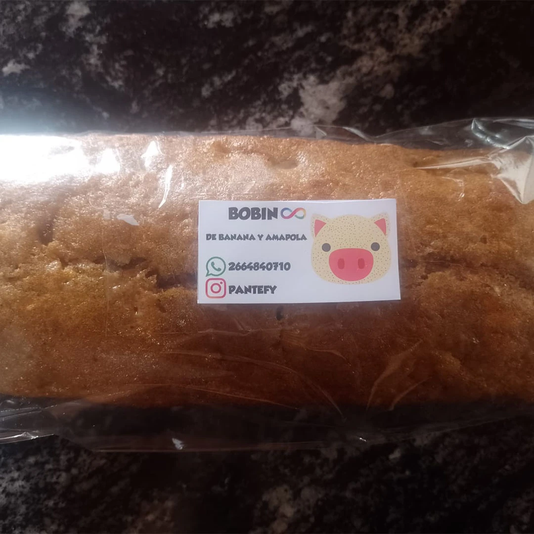Budín de harina integral con banana y amapola. Bajo en azúcar. Sin conservantes. Peso aproximado 750gr. Tamaño 28cm.