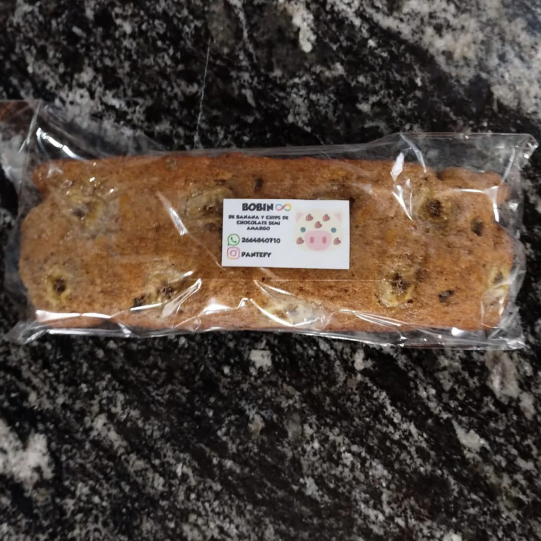 Budin de harina integral con banana, y chips de chocolate semi amargo. Bajo en azúcar. Sin conservantes. Peso aproximado 750gr. Tamaño 28cm.