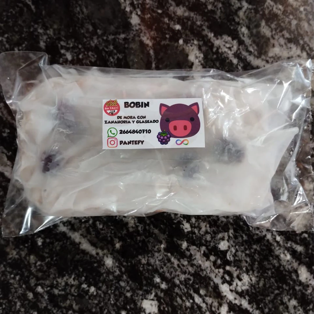 Budín elaborado con premezcla sin tacc, zanahoria, moras y jugo de limón. Bajo en azúcar, sin conservantes, sin lactosa. Peso aproximado 450gr. Tamaño 20cm.