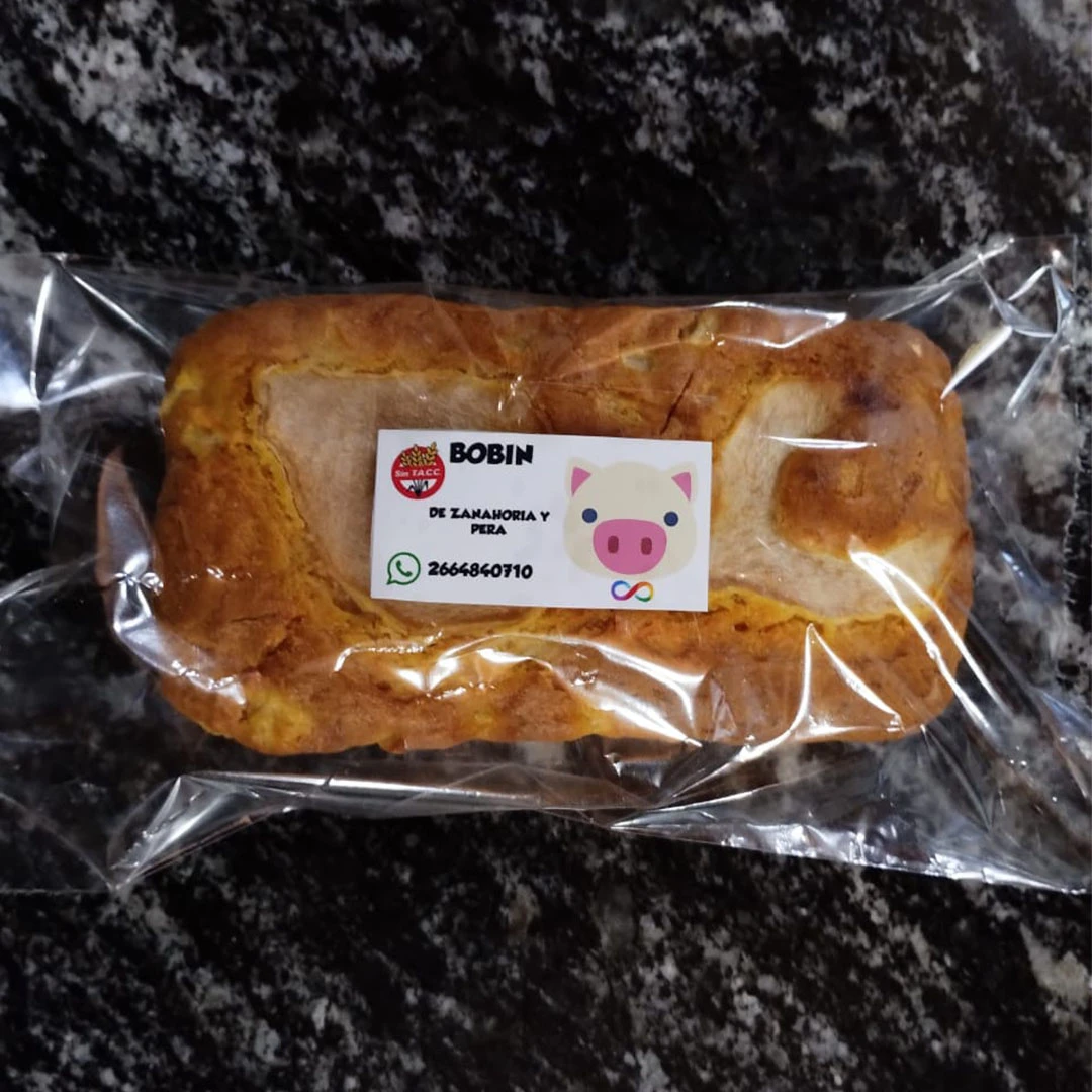 Budín elaborado con premezcla sin tacc, zanahoria y pera. Bajo en azúcar, sin conservantes, sin lactosa. Peso aproximado 450gr. Tamaño 20cm.