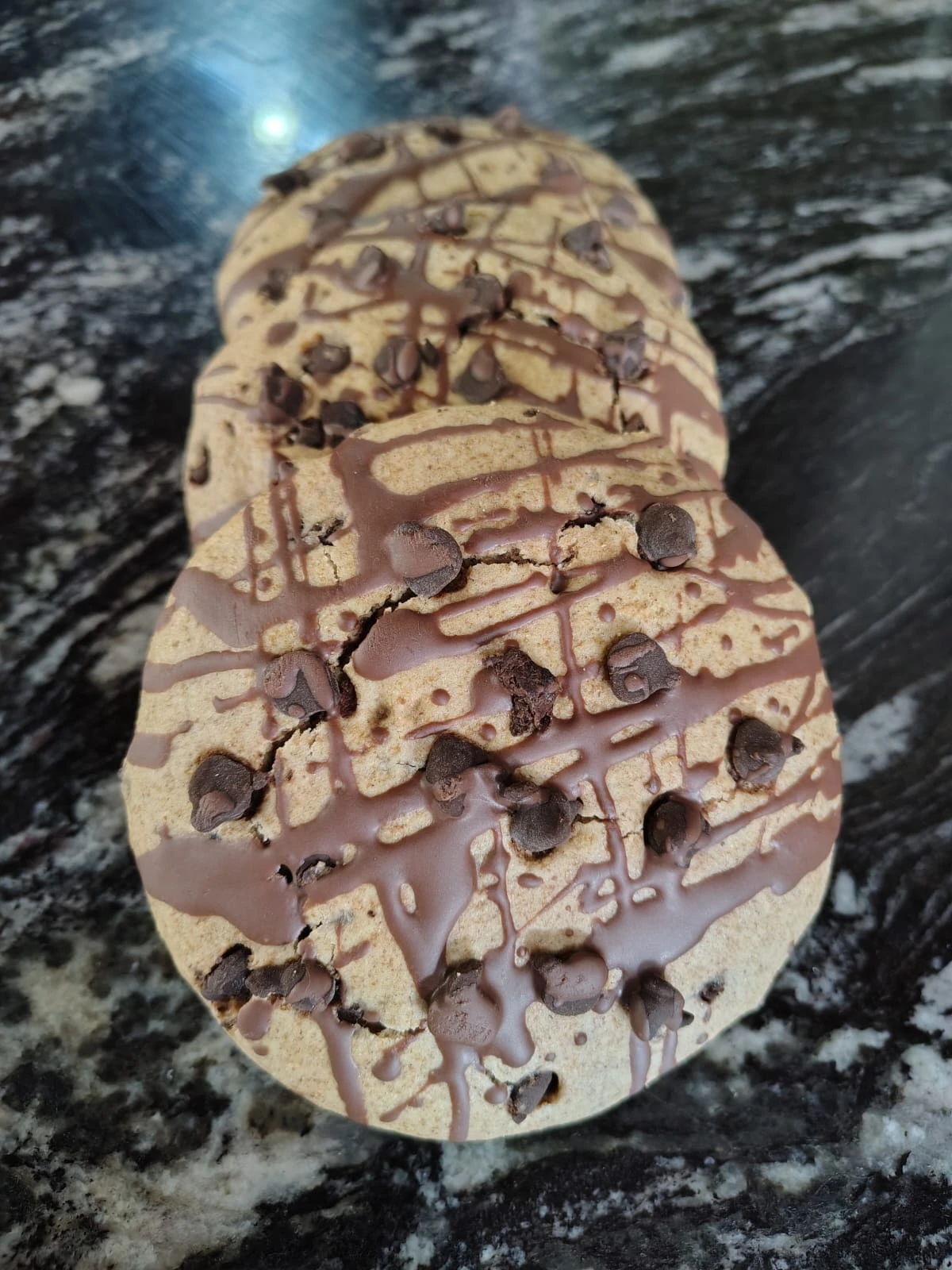 Ingredientes: Harina integral, chips de chocolate semi amargo, huevo, esencia de vainilla, azúcar, polvo de hornear, aceite vegetal.