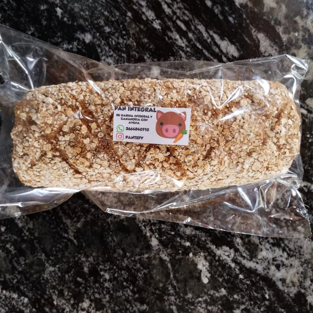 Pan integral con zanahoria y salvado de avena. Bajo en sodio. Peso aproximado 950gr. Tamaño 28cm