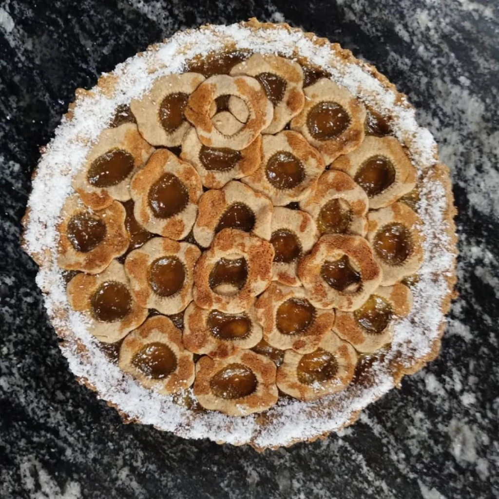 pastafrola de harina integral con batata. Baja en azúcar. Sin manteca y sin lactosa. Tamaño 28cm y peso aprox. 850gr.