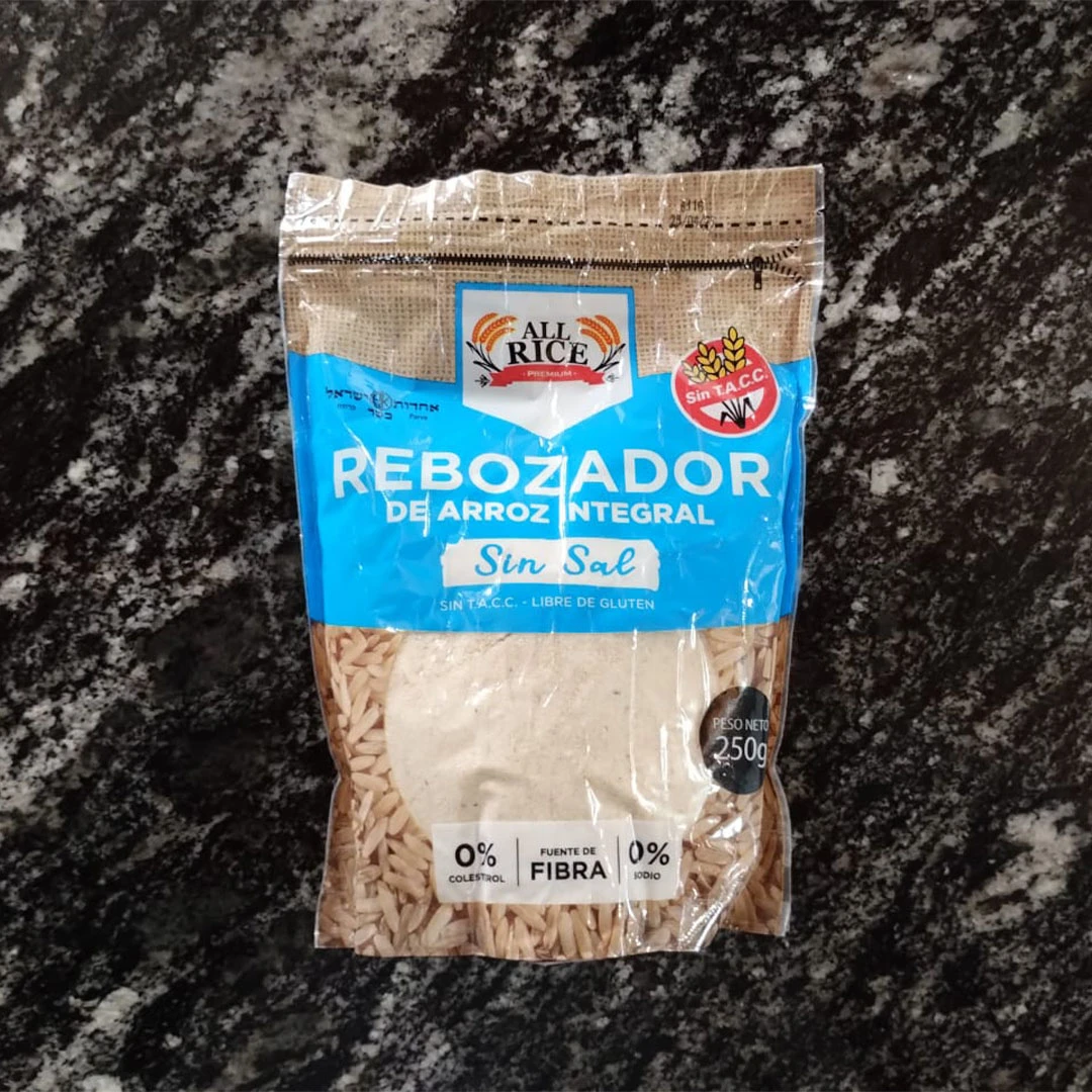 Rebozador sin tacc de arroz integral sin sal. Marca All Rice